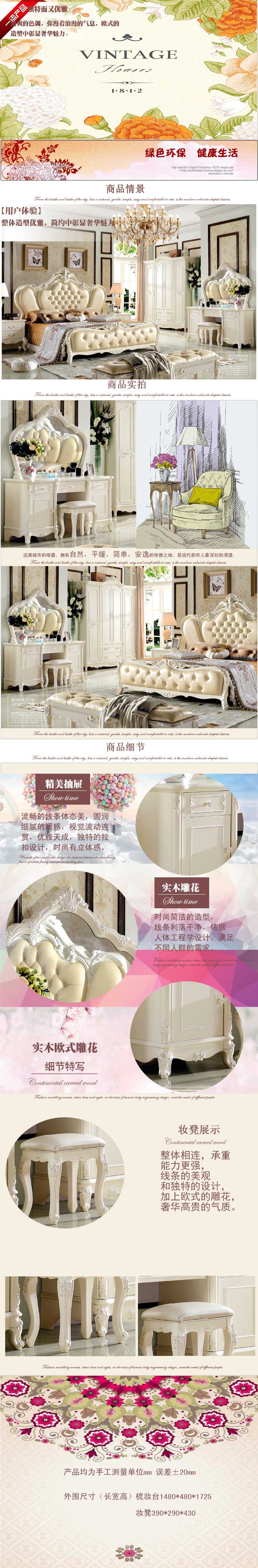 外围尺寸单位mm(长宽高) 梳妆台1480*480*1725 妆凳390*290*430