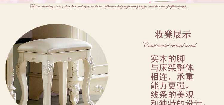 欧式雕花甜美公主韩式实木象牙白荷花白妆凳,王者绝非偶然,完美的设计、精湛的工艺、厚道的选材、实惠的价格,独特流线元素,清晰美观,营造高贵优雅的生活!尊贵奢华 ,品质铸就精品,卓越艺术,欧式新古典典范
