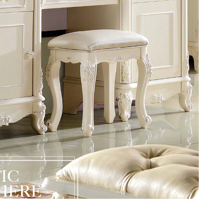 拉菲奥尼新款欧式雕花甜美公主实木象牙白妆凳 T01