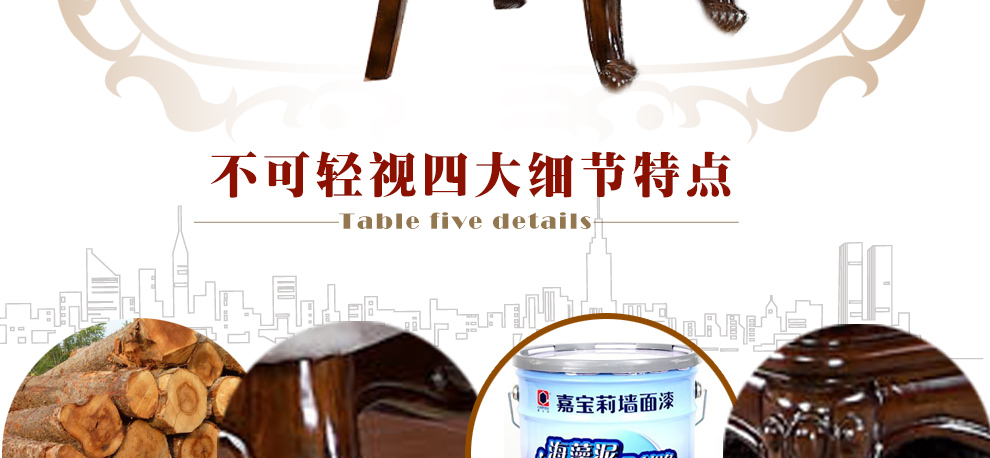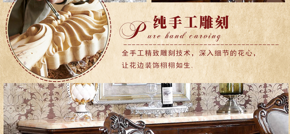 清晰的拼花木面纹理,细腻而有光泽。每一处细致的雕花,传承百年美式经典工艺