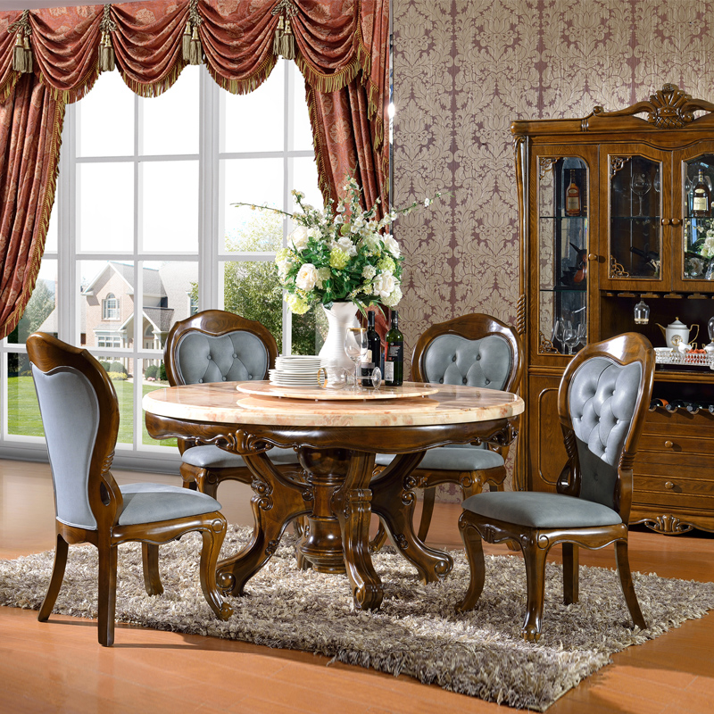 富家美佳系列欧式风格天然大理石圆餐台 实木餐椅K90