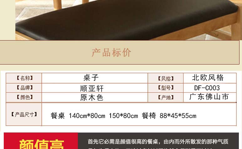 外围尺寸(长*宽):餐桌 140cm*80cm 150*80cm 餐椅 88*45*55cm