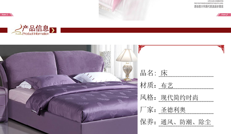 现代布艺时尚简约 色彩亮丽 线条明朗 1.8米 1.5米婚床 大床