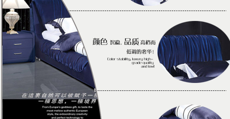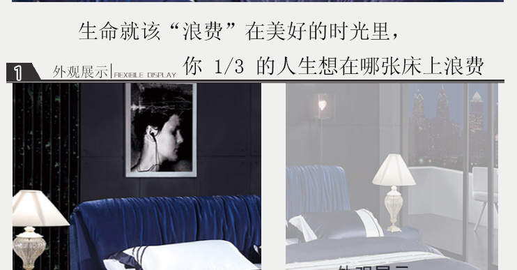 色彩亮丽 线条明朗 现代简约时尚布艺1.5米 1.8米婚床 大床