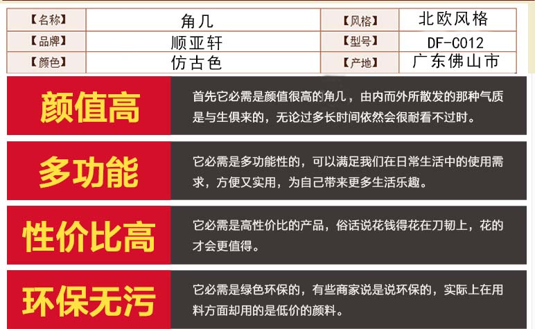 顺亚轩 简约实木角几仿古色方几储物边几北欧角几DF-C012