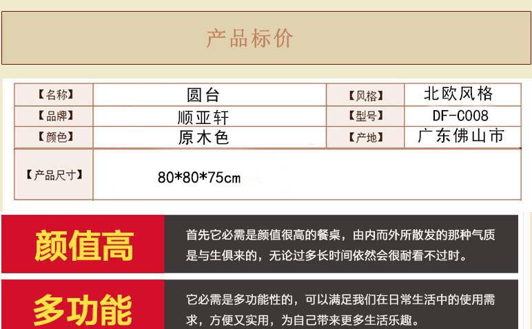 纯实木制作,经典简约的造型,流畅的线条,经济实用,经久耐用,实用性强,纹理清晰,可以搭配不同风格的家具,采用原木色。稳定性强,耐高温耐腐蚀,做工精致,外观大气。桌板厚实。