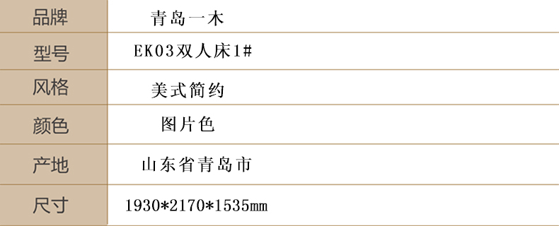 美式简约实木床全实木双人床 美式乡村胡桃木青岛一木EK03双人床1#