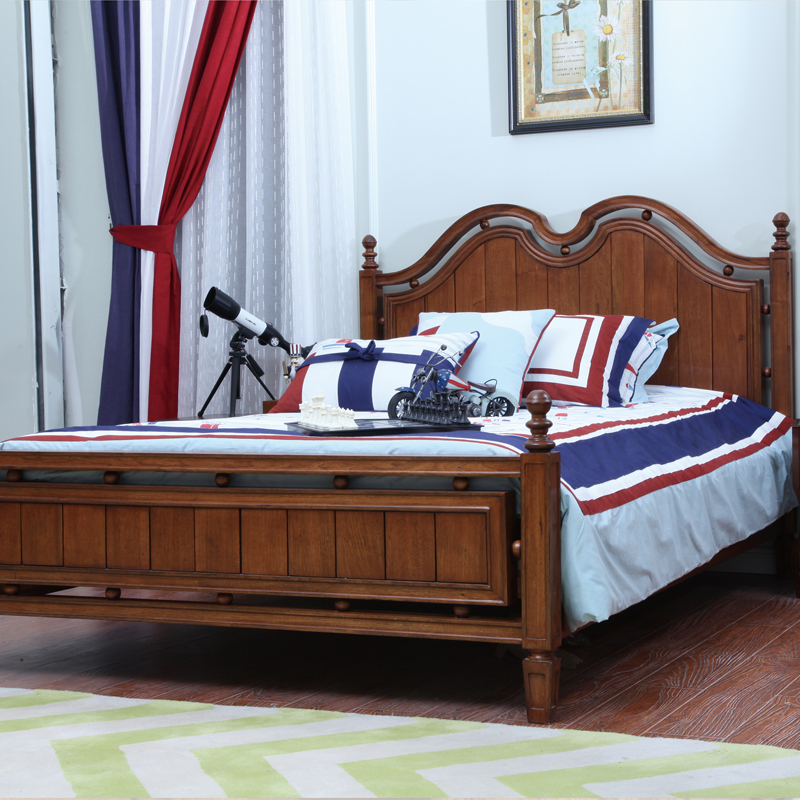 美式简约青少年实木床 南洋胡桃木卧室床 全实木家具青岛一木EK青少年床