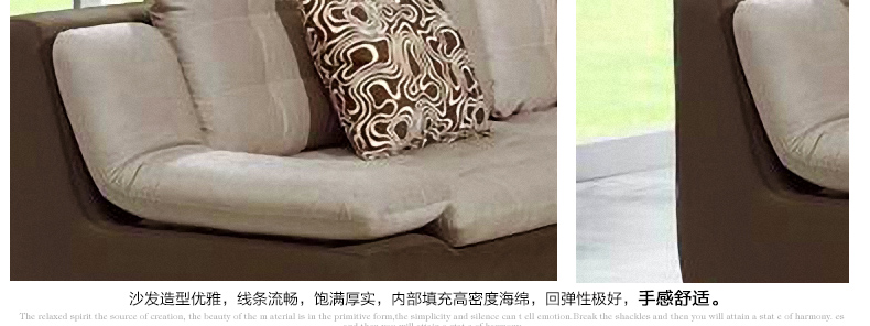 沙发的款式很漂亮,做工大气,实物和图片一样,基本无色差,坐包海绵饱满,坐上去很舒适,质量不错,我很喜欢。