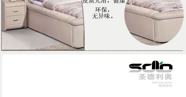 圣德利奥现代简约皮床小户型双人床1.5 1.8米婚床皮艺床软包大床1509