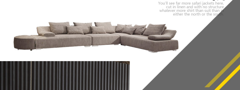 混织高档麻布,羽绒靠枕,可移动带滚半圆踏,低调奢华,知性优雅,是您大款大气沙发的不二选择!