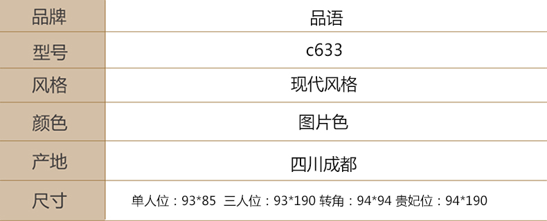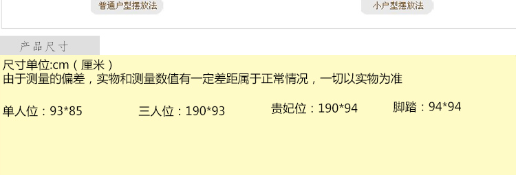 单人位;93*85 三人位:190*93 贵妃位:190*94 转角:94*94(cm) 本款厂品有两种颜色需要哪款联系客服!