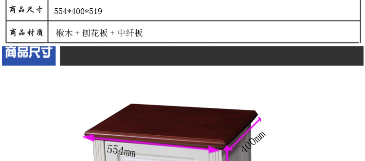 材质 楸木+刨花板+美纳木板 规格 554*400*519mm