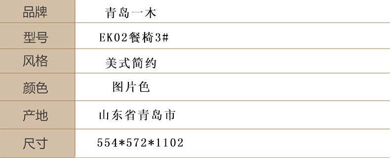 美式简约实木餐椅美式乡村复古休闲时尚简约新古典酒店桌椅青岛一木EK02餐椅3#