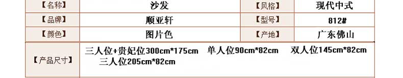 外围尺寸:三人位+贵妃位300cm*175cm 单人位90cm*82cm 双人位145cm*82cm 三人位205cm*82cm