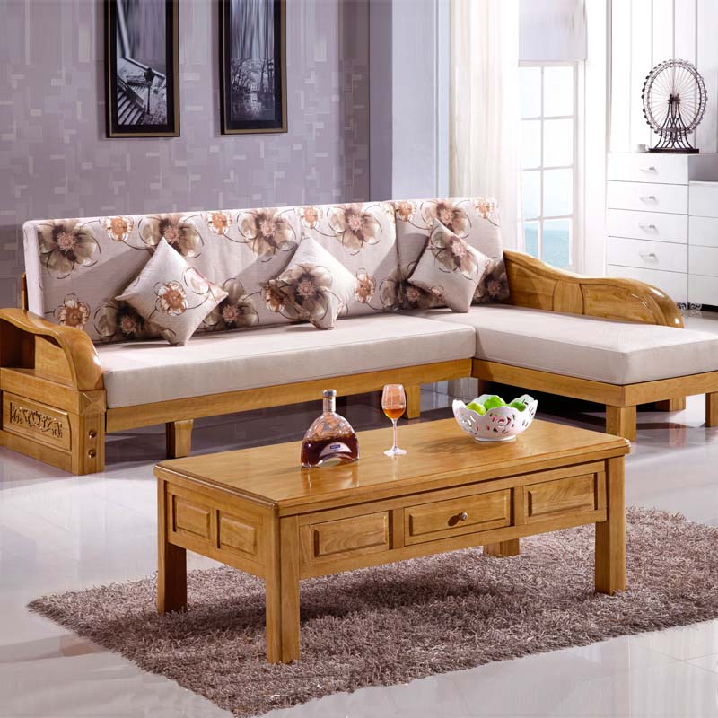 顺亚轩 实木布艺结合沙发中式沙发新款碎花面料沙发组合812#