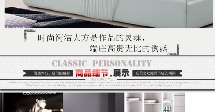 色彩清新雅致 不落俗套 线条明朗 现代简约软包舒适大床