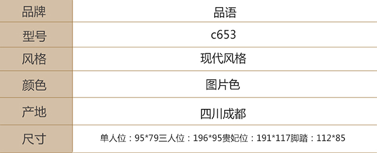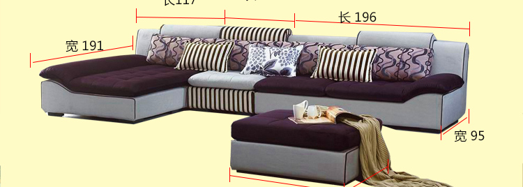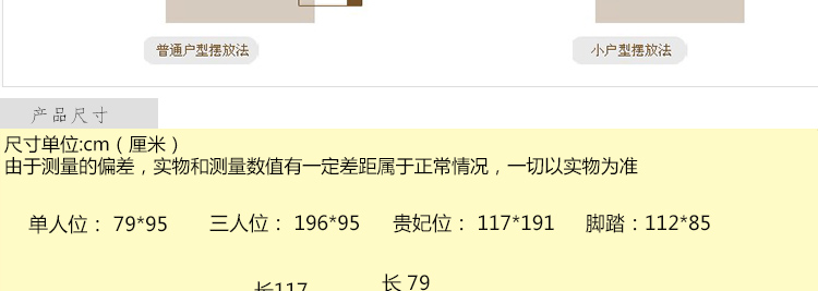 单位:(cm)单人沙发;95*79 三人:196*95 贵妃位:191*117 脚踏:112*85