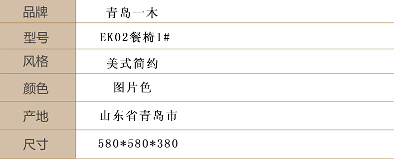 美式餐椅 实木 美式休闲餐椅 美式简约复古椅子青岛一木EK02餐椅1#