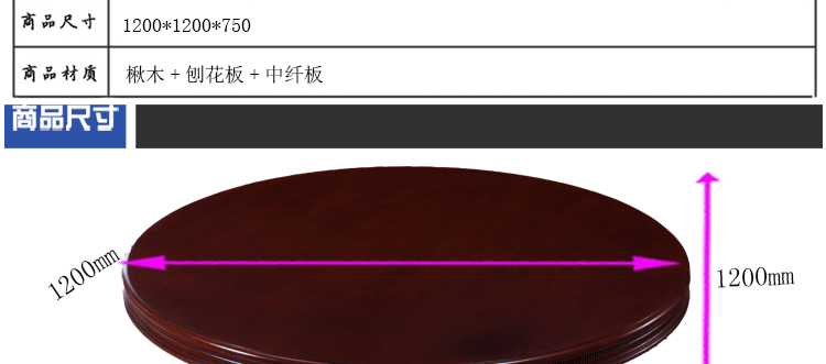材质 楸木+刨花板+美纳木板 规格 1200*1200*750mm