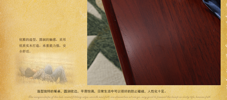 100%天然实木面板,结构均匀紧致,文理清晰优美,具有天然高强度耐磨性且不易开裂,散发着古朴雅致的气息,唯美精致,华丽圆润。