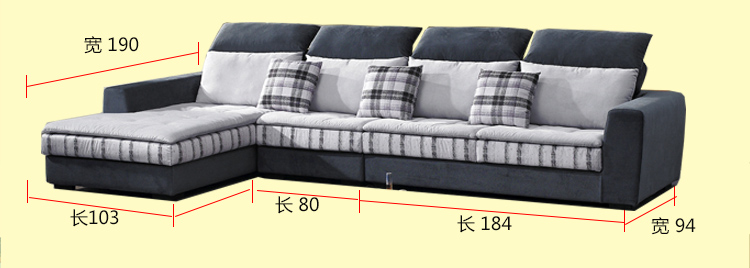 单位(cm)单人位:80*94 三人位:184*94 贵妃位:103*190