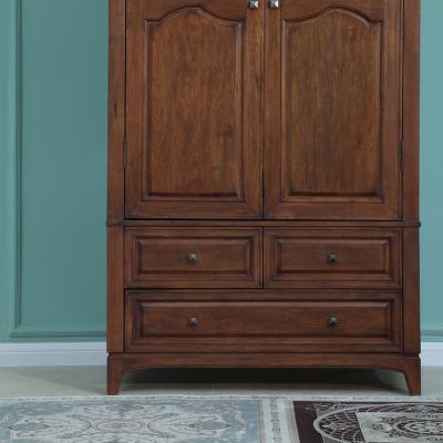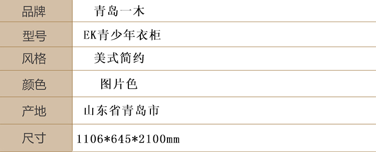美式实木儿童双门三抽屉衣柜 青少年胡桃木小衣柜 小户型简易衣帽间家具青岛一木EK青少年衣柜