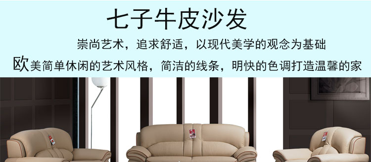 七子牛现代真皮沙发1 2 3 组合 U型沙发 客厅皮沙发 沙发组合8625-2
