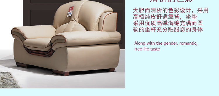 沙发款式时尚大气,做工和质量都非常不错,没有色差,皮质细腻柔软,坐上去软硬适中非常舒服,家人都很满意