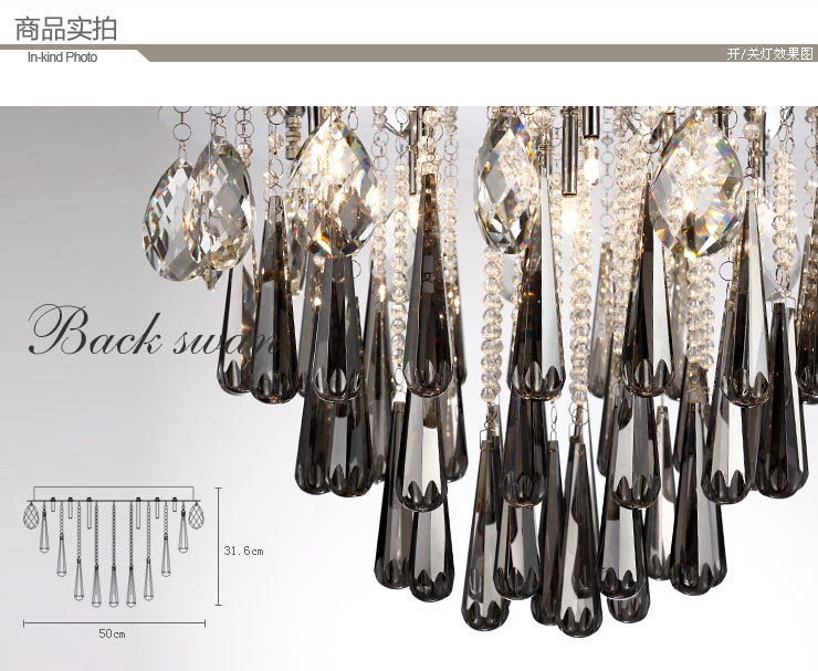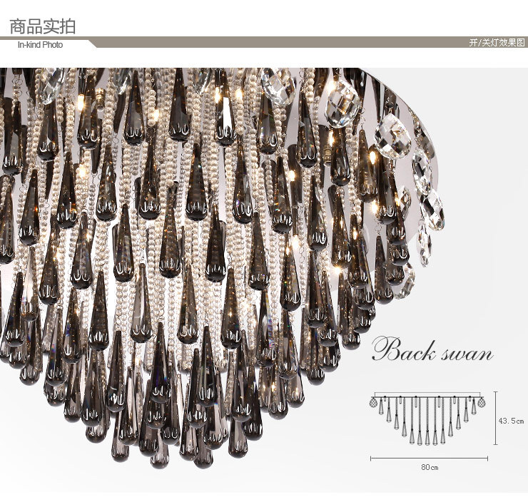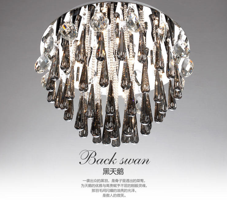 维纳斯现代简约时尚客厅灯卧室灯 黑天鹅圆形水晶灯烟灰色led吸顶灯9021