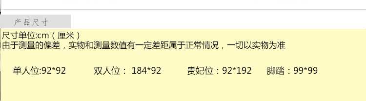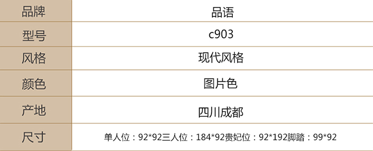 单人位:92*92 三人位;184*92 贵妃位:92*192 脚踏;99*99(cm)