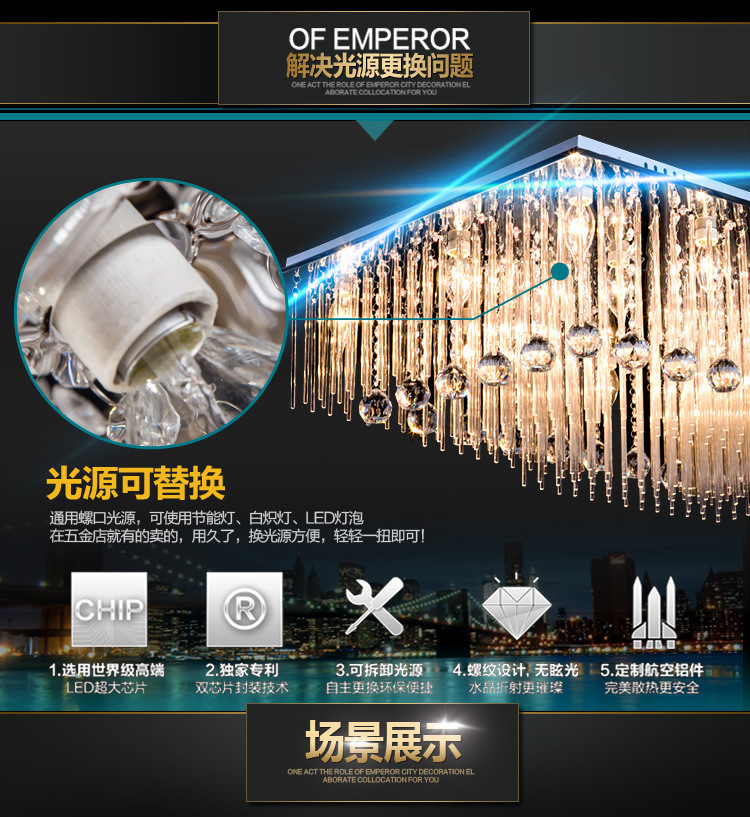 维纳斯长方形水晶灯客厅吸顶灯 led卧室灯灯饰灯具5512