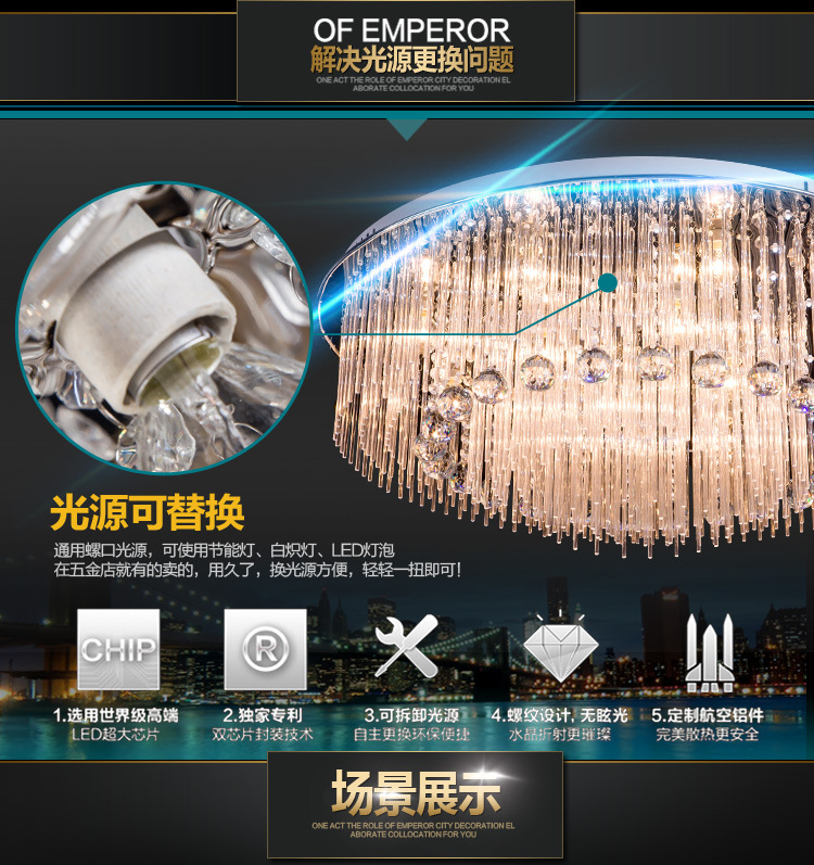 新款圆形吸顶灯水晶灯LED客厅灯卧室灯厂家一件混批特价促销5510