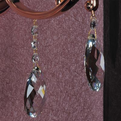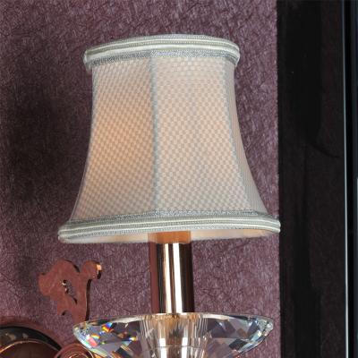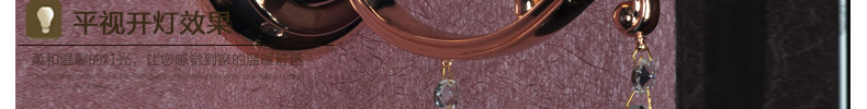 优质五金锻打弯管造型,单头装饰定制,五金电镀玫瑰金色,配K9水晶灯碟及挂件,米黄束腰布罩