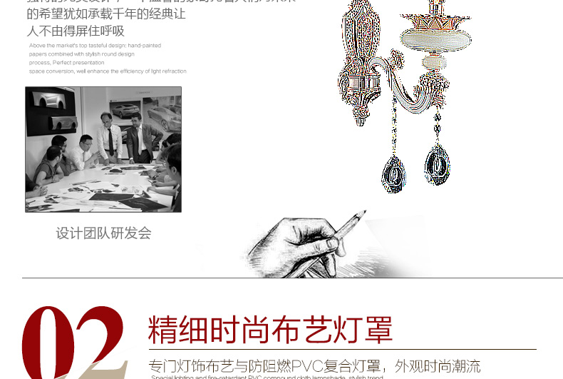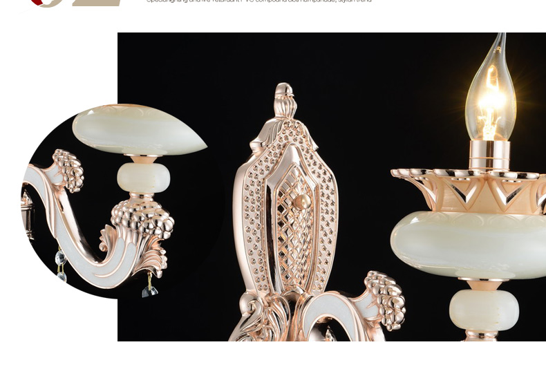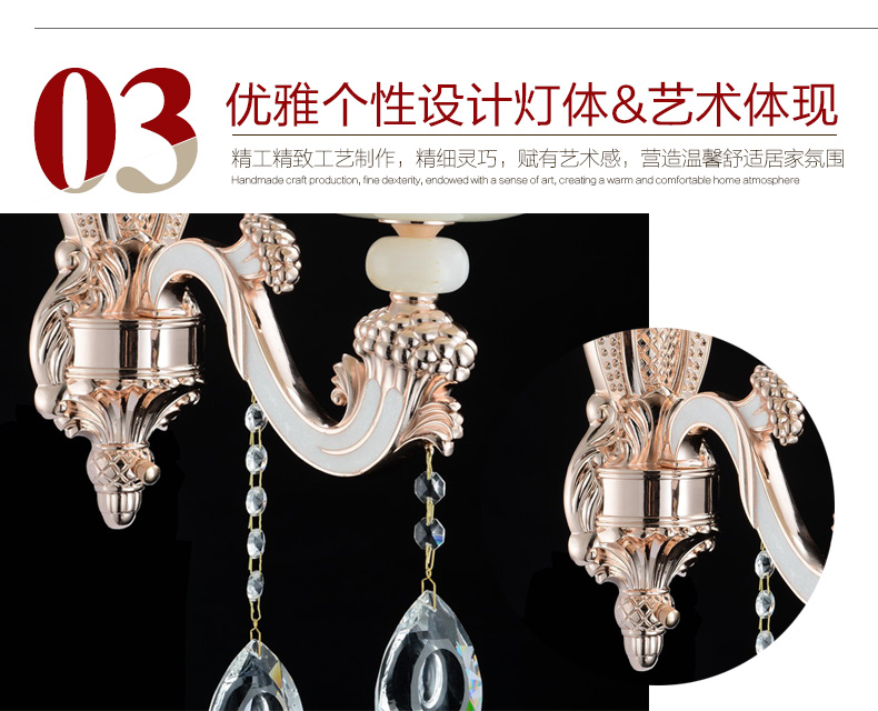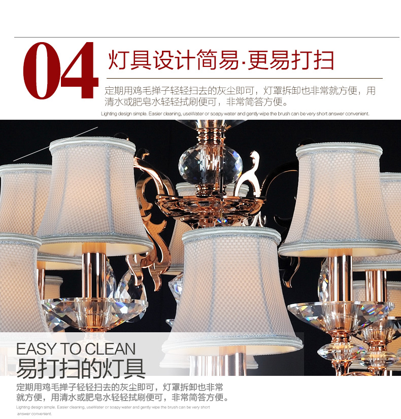 蜡烛水晶吊灯体现出欧式皇家风格,给人一种尊贵的气质;加上晶莹剔透的水晶,更显得富丽堂皇,在简化欧式风格后更适合现代家居装修格调,应用范围广泛。