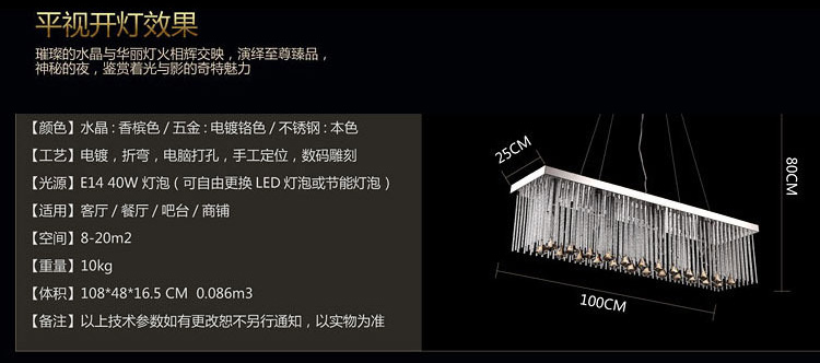 维纳斯水晶吊灯 卧室水晶灯客厅灯 现代简约长方形餐厅吊灯水晶灯饰 批发厂家直销3312