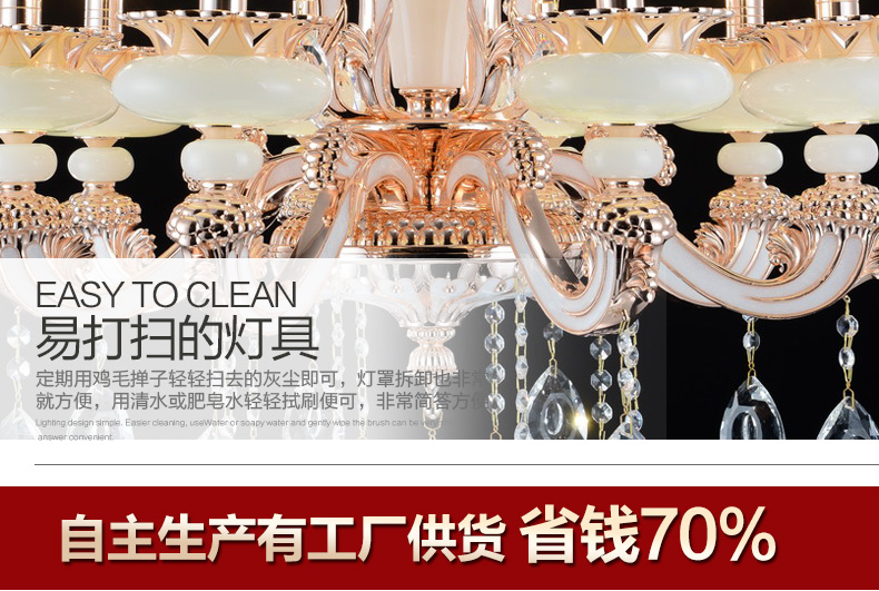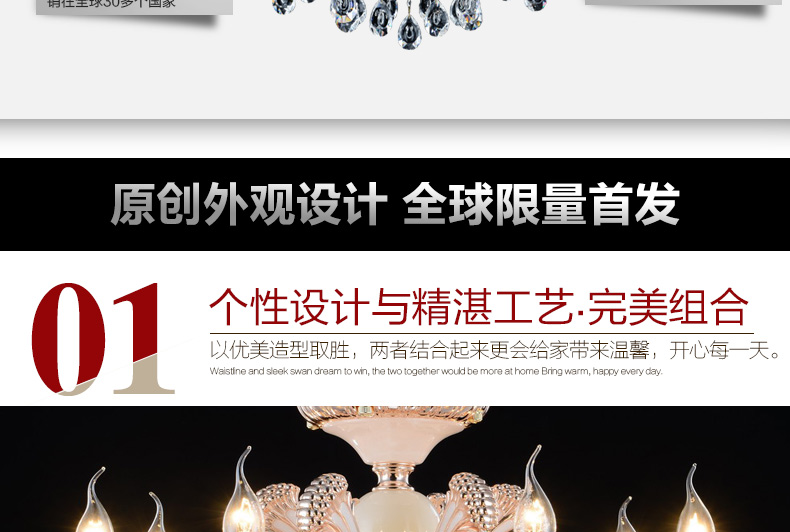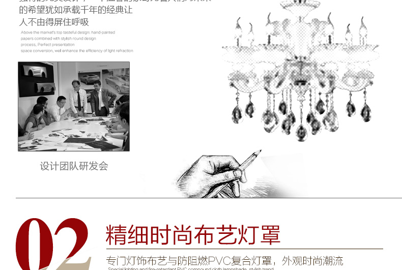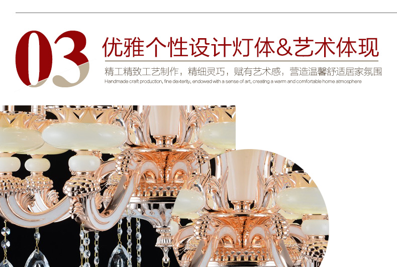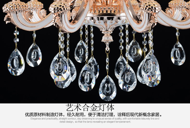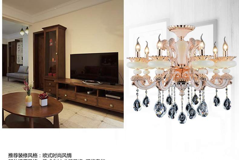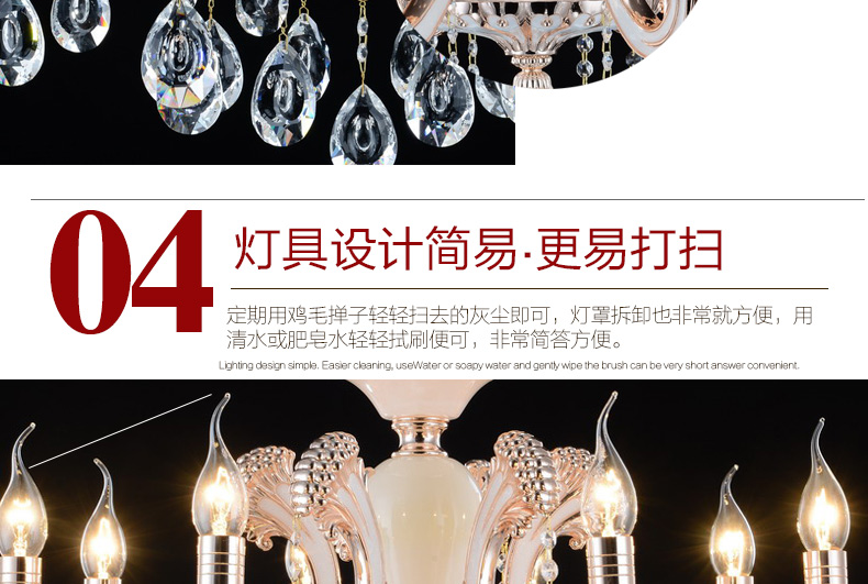 蜡烛水晶吊灯体现出欧式皇家风格,给人一种尊贵的气质;加上晶莹剔透的水晶,更显得富丽堂皇,在简化欧式风格后更适合现代家居装修格调,应用范围广泛。