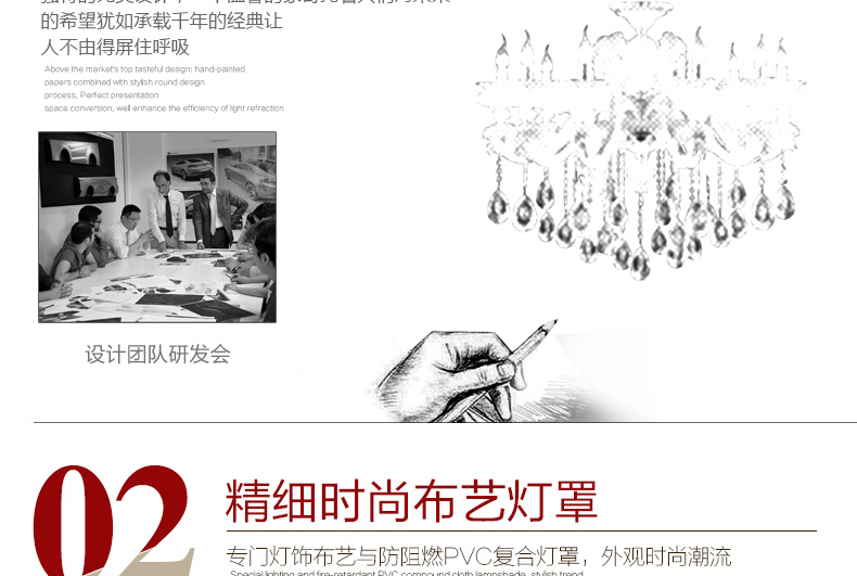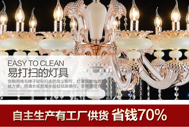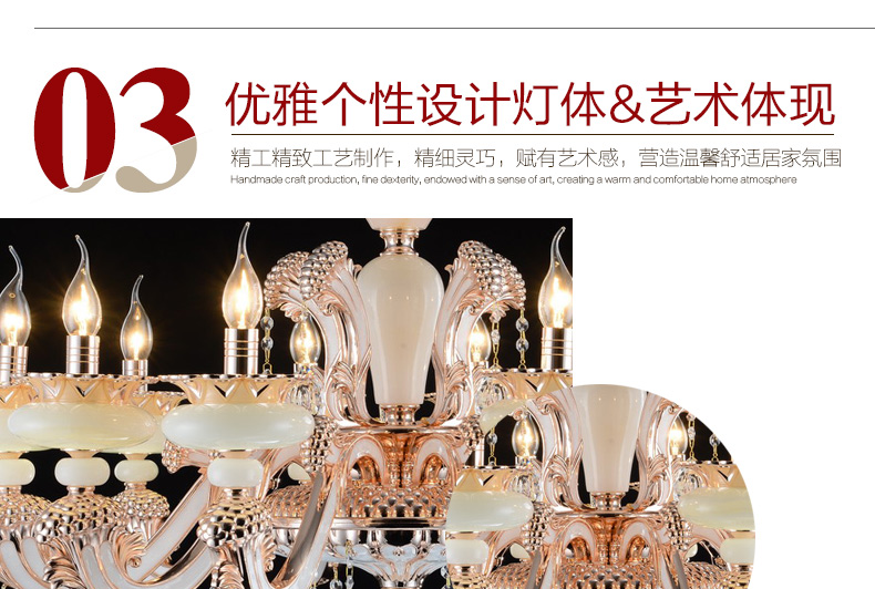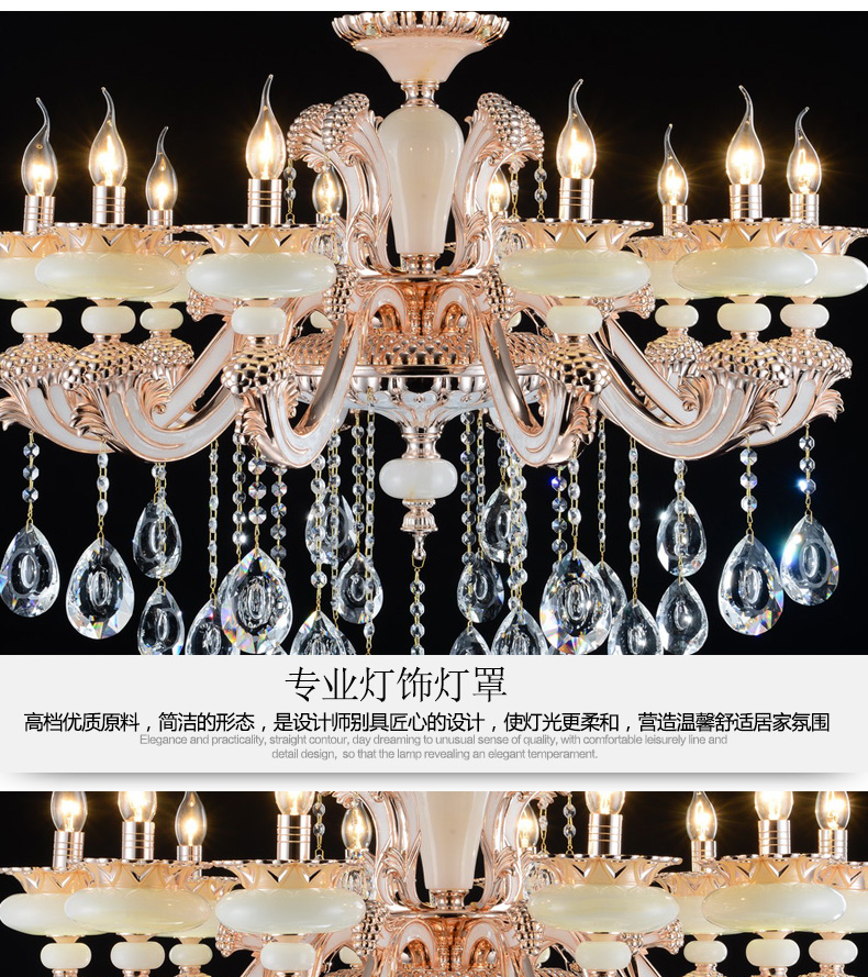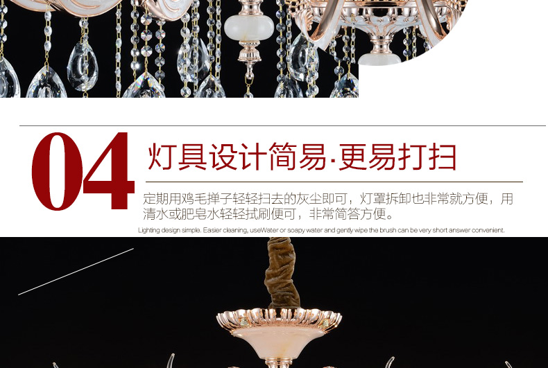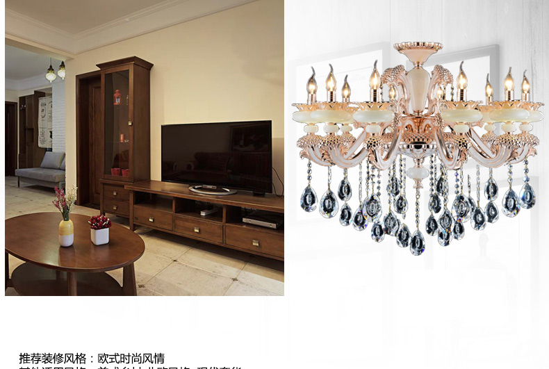 蜡烛水晶吊灯体现出欧式皇家风格,给人一种尊贵的气质;加上晶莹剔透的水晶,更显得富丽堂皇,在简化欧式风格后更适合现代家居装修格调,应用范围广泛。