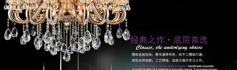 蜡烛水晶吊灯体现出欧式皇家风格,给人一种尊贵的气质;加上晶莹剔透的水晶,更显得富丽堂皇,在简化欧式风格后更适合现代家居装修格调,应用范围广泛。