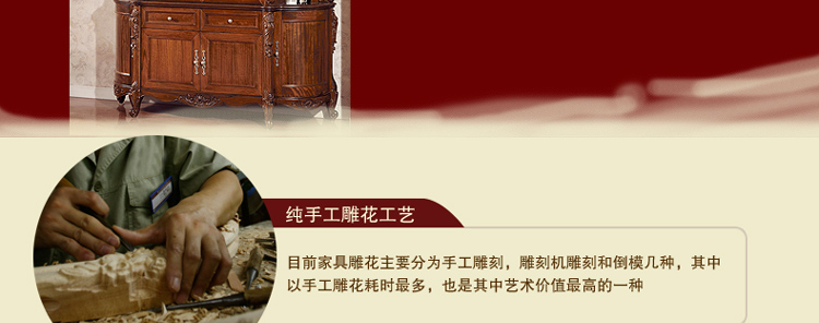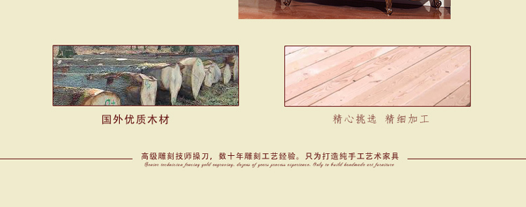 进口实木 人工雕刻 台湾大宝水性油漆 十五年的家具出口生产经验 促使我们制造高端完美的实木家具 回馈国内广大消费者 有您的支持 我们将把家具做得更合您的品味