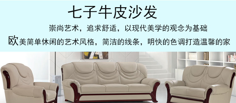 七子牛真皮沙发现代客厅 1+2+3 休闲真皮 组合沙发 头层牛皮8631