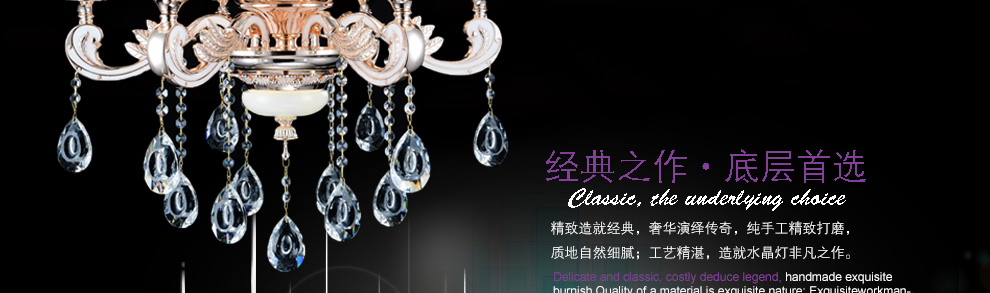 蜡烛水晶吊灯体现出欧式皇家风格,给人一种尊贵的气质;加上晶莹剔透的水晶,更显得富丽堂皇,在简化欧式风格后更适合现代家居装修格调,应用范围广泛。