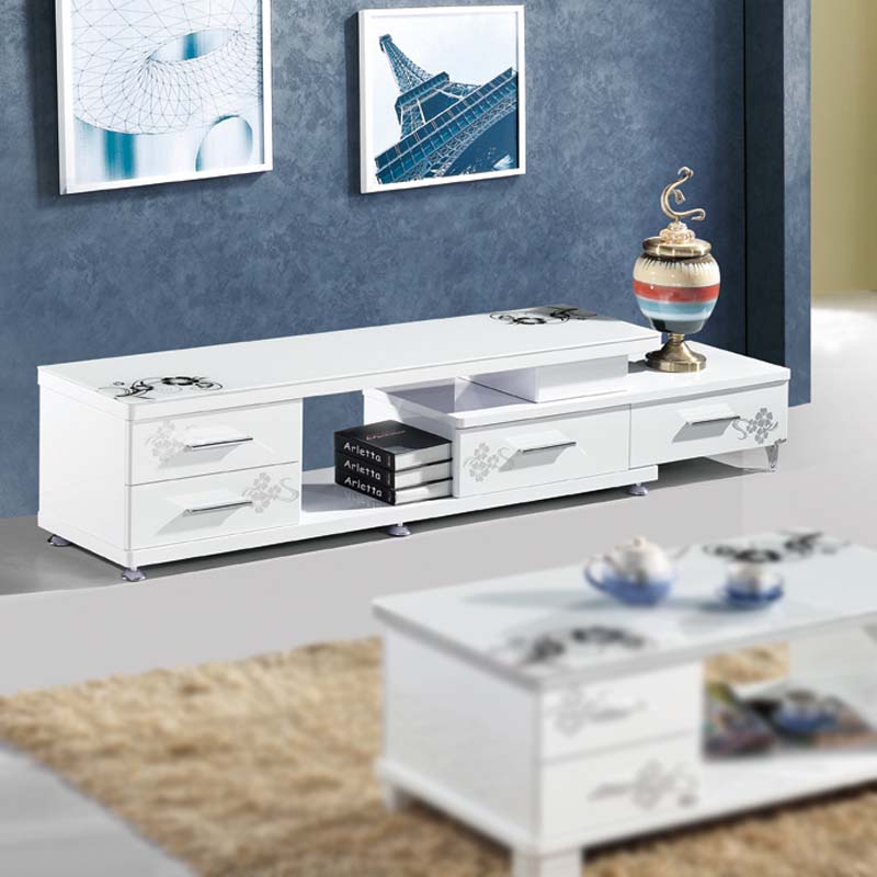罗尔曼 简约现代电视柜伸缩钢化玻璃时尚客厅电视柜TV27