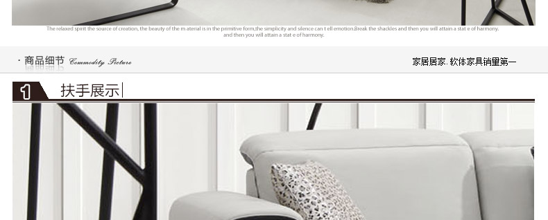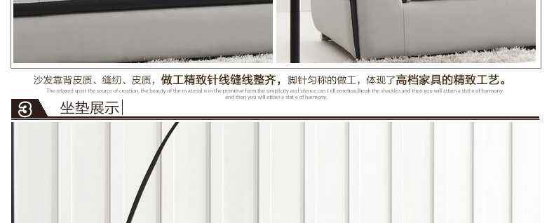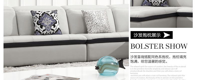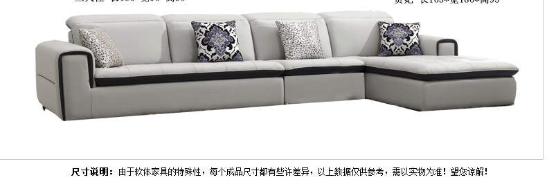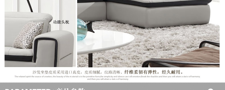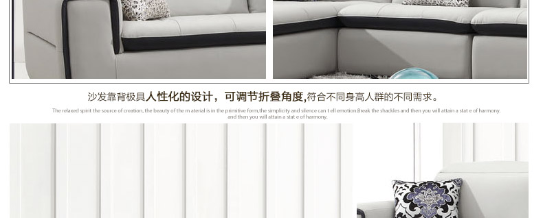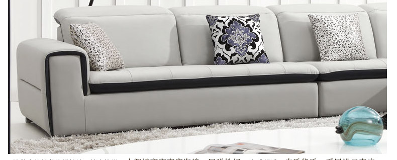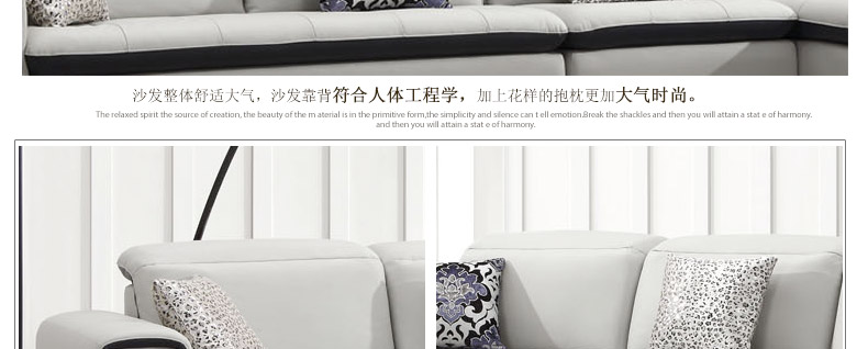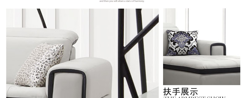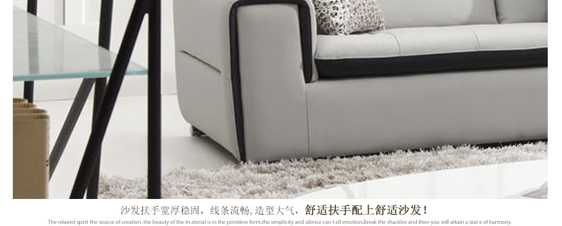 功能头枕,边条勾勒,时尚简单的现代感在灰色的呈现演绎中散发质感的魅力,沙发因其皮质柔软、厚实、质量最好,皮质较粗厚,手感丰满、柔软、富有弹性,且具有较强的韧性和回收性,不易变形和撕裂,最重要的是透气性很好。