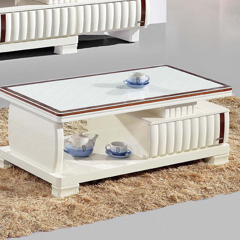 罗尔曼 小户型圆角茶几简约钢化玻璃茶桌现代方形圆角茶几122#