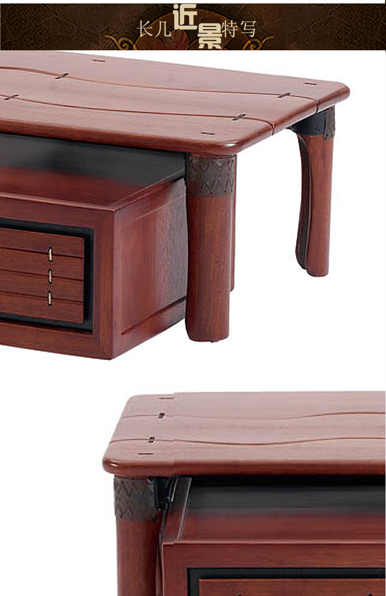 卡木其原始原素全实木茶几木色长几家具长方形茶几抽屉CM-B07B