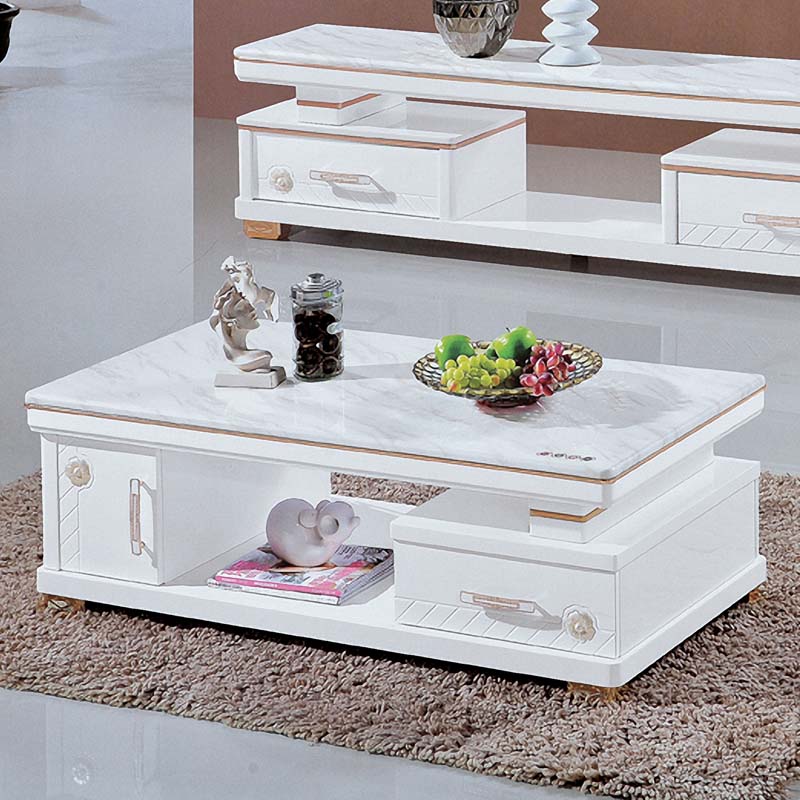 罗尔曼 茶几简约现代钢琴烤漆钢化玻璃理石茶几 93#