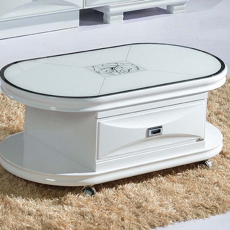 罗尔曼 简约现代带储物功能小户型时尚钢琴烤漆宜家客厅白色茶几 105#