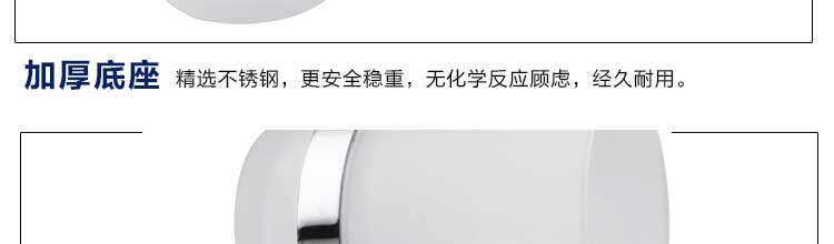 精选优质环保A级白钢, 表面均匀抛光,多层电镀有效防止表面酸 碱腐蚀,确保产品表面光泽亮丽,永久闪 亮
