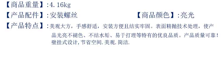 精选优质环保A级白钢,表面均匀抛光,多 层电镀有效防止表面酸 碱腐蚀,确保产品表面光泽亮丽,永久闪 亮 耐磨 结实耐用产品!
